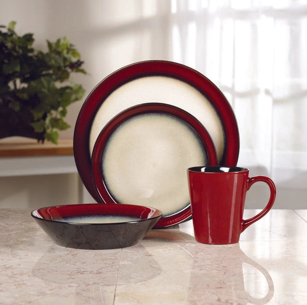 Aria Red 16 Piece Dinnerware Set, Service For 4