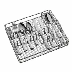 This Gourmet Basics Art Deco Hostess Buffet Storage Caddy features a contemporary black finish that complements most decors. The wire frame design provides clear visibility of the contents, and the caddy features 4 compartments to keep utensils divided and organized, a slot for napkins, and a paper towel holder. Caddy has a convenient handle on top for carrying.