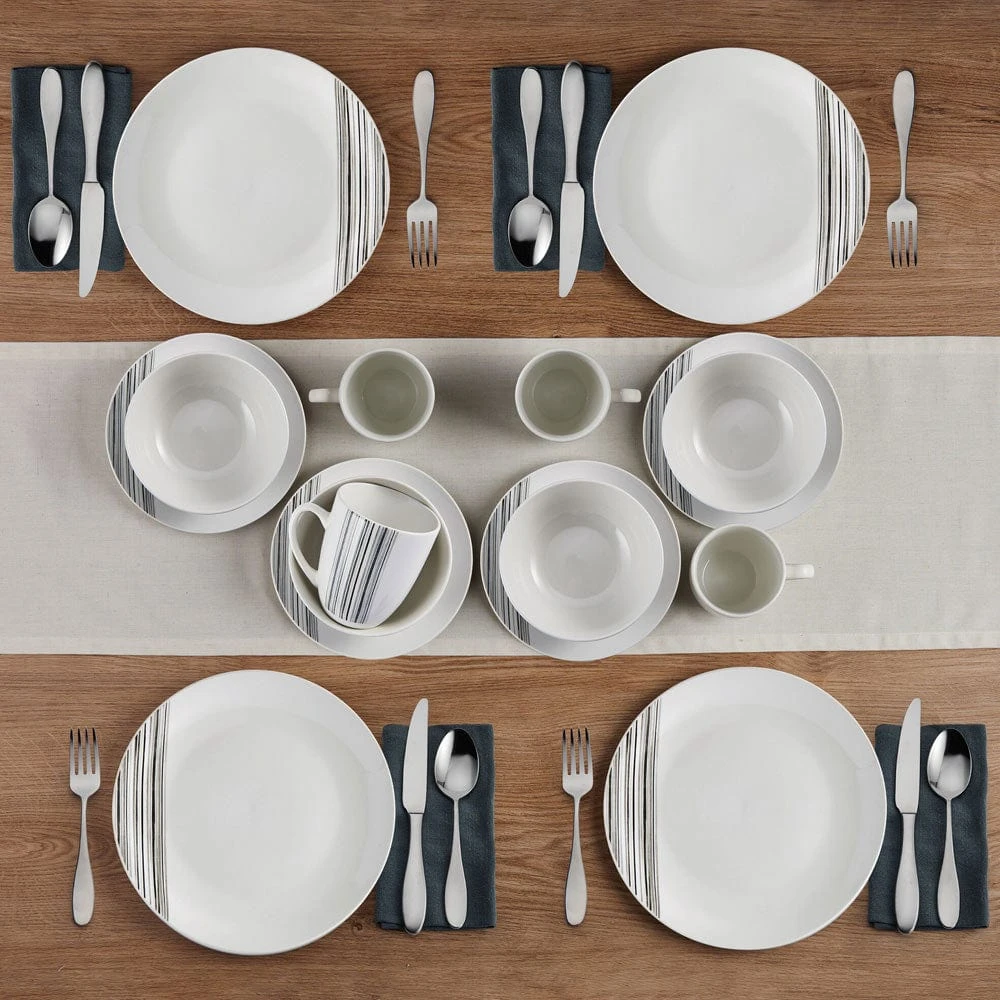 Brushed Lines 16 Piece Dinnerware Set, Service For 4