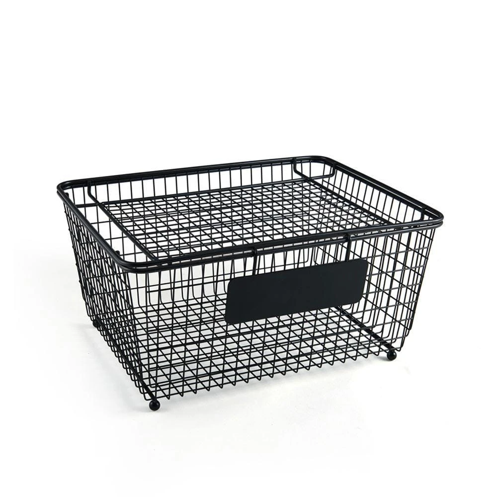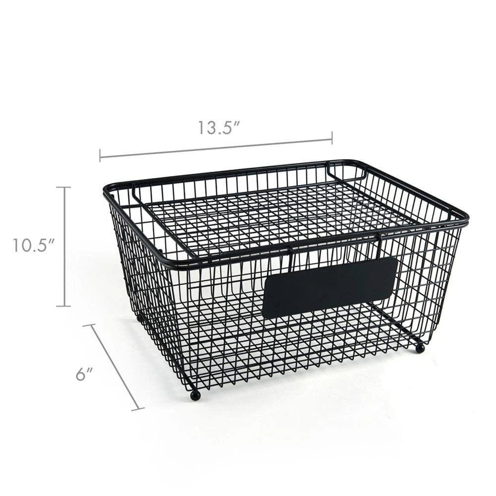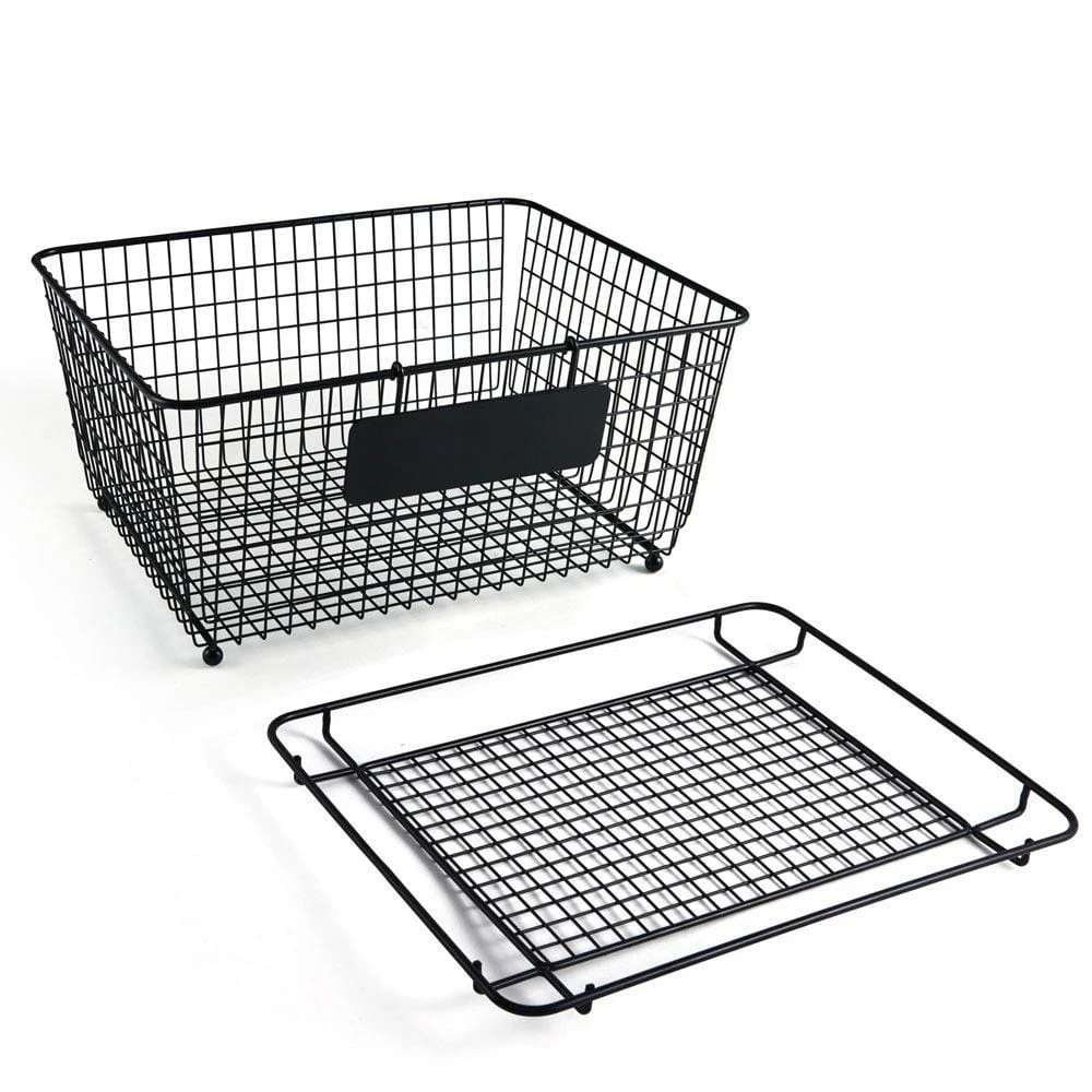 This Gourmet Basics Chalkboard Basket with Lid features a wire frame design with a timeless black finish. Comes with a lid, and a removable chalkboard sign for labeling the basket to easily identify the contents.