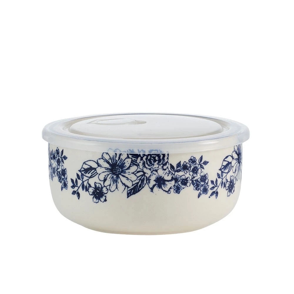 This Gabriela Blue Set of 2 Storage Bowls feature a white background adorned with a lovely vivid blue floral pattern, on a reactive glaze finish. Due to the nature and hand-crafted qualities of reactive glaze, no two pieces are exactly alike and will exhibit unique variations in color and pattern. Product may slightly differ from image shown.