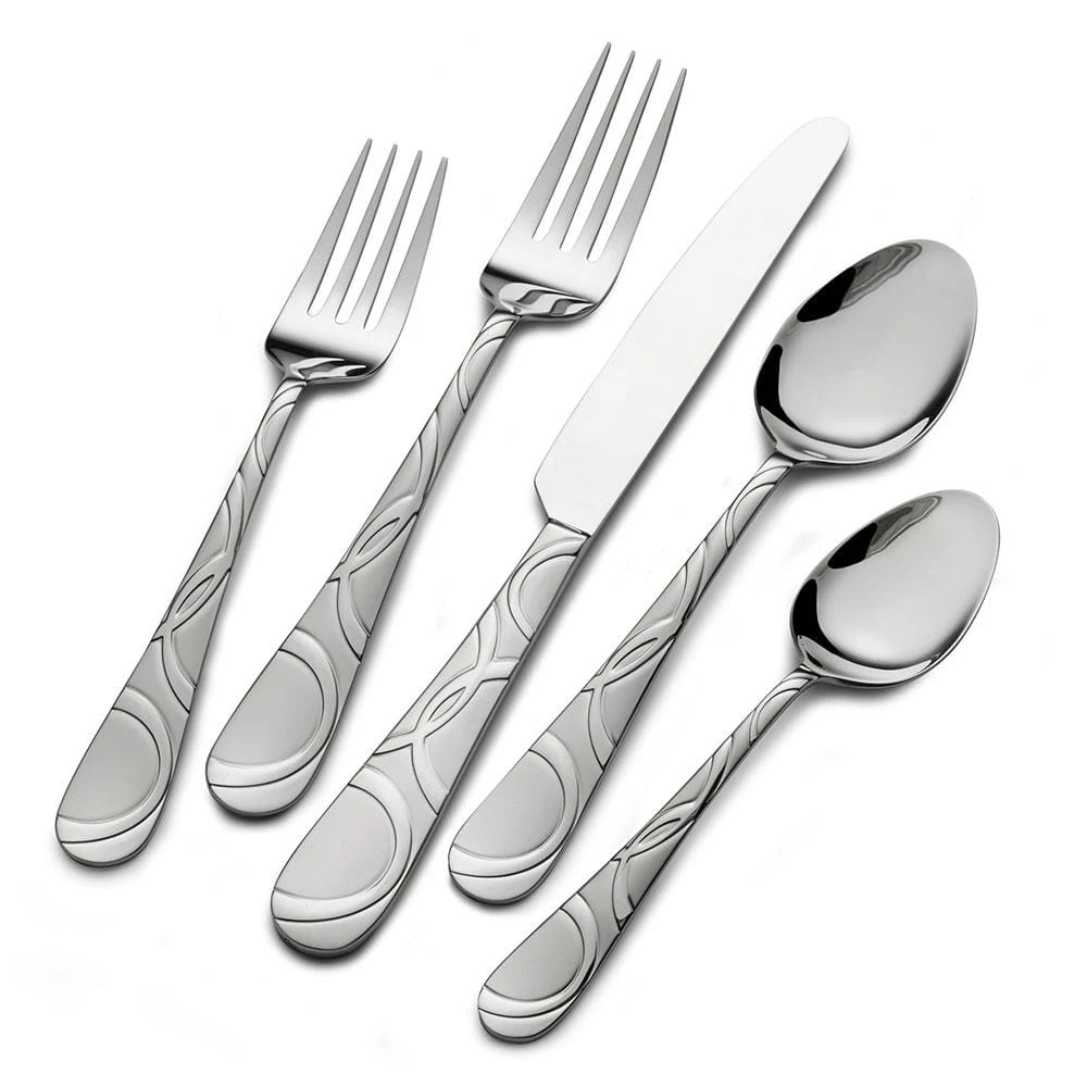 Pfaltzgraff Everyday Garland Frost Flatware Set features a fun swirl pattern on the handle with a satin finish that will add a unique look to your table. Constructed of superior quality 18/0 stainless steel, this set will stand up to the rigors of everyday use. 20 piece flatware set, service for four, includes (4) each: dinner fork, salad fork, dinner knife, dinner spoon, teaspoon. Dishwasher safe.