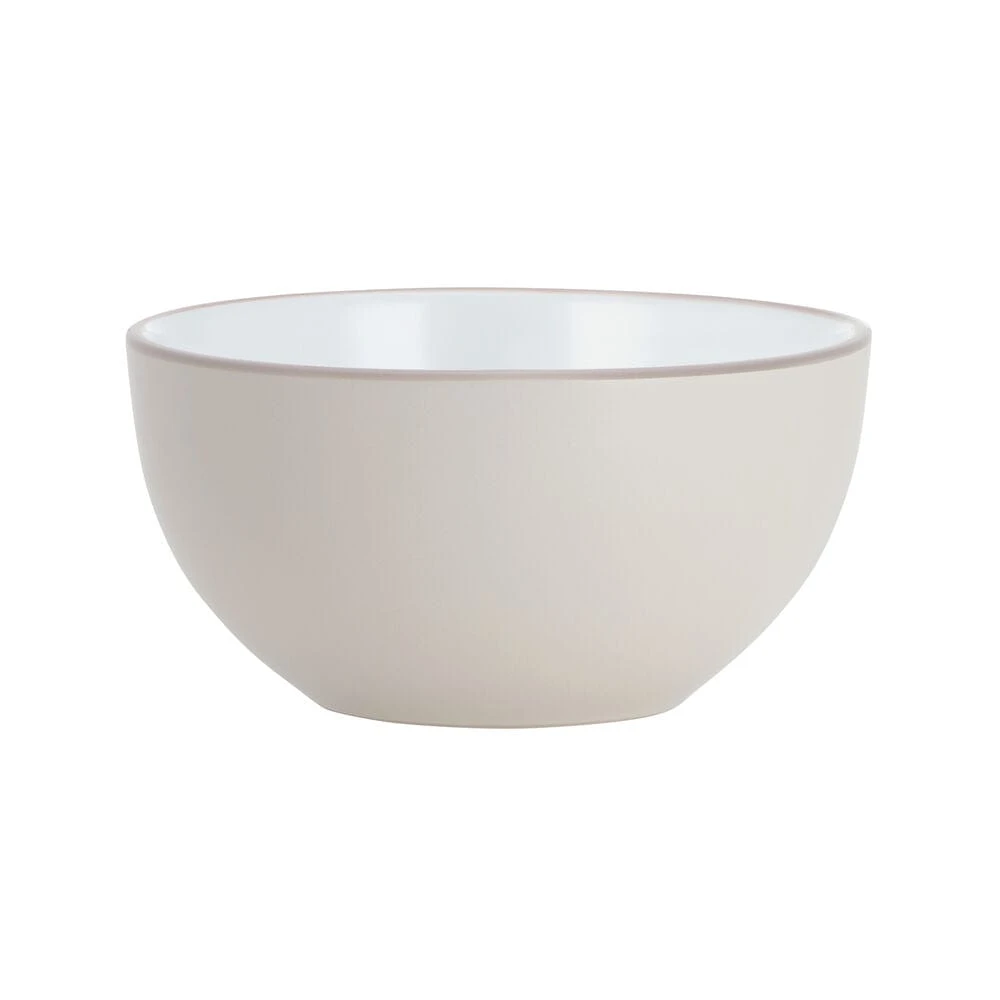 This Grayson Taupe Dinnerware Set features sleek, simple shapes that are escalated to stylish elegance by white centers and thick solid borders of taupe accented by a dark taupe band. This collection will add a contemporary touch to your table.