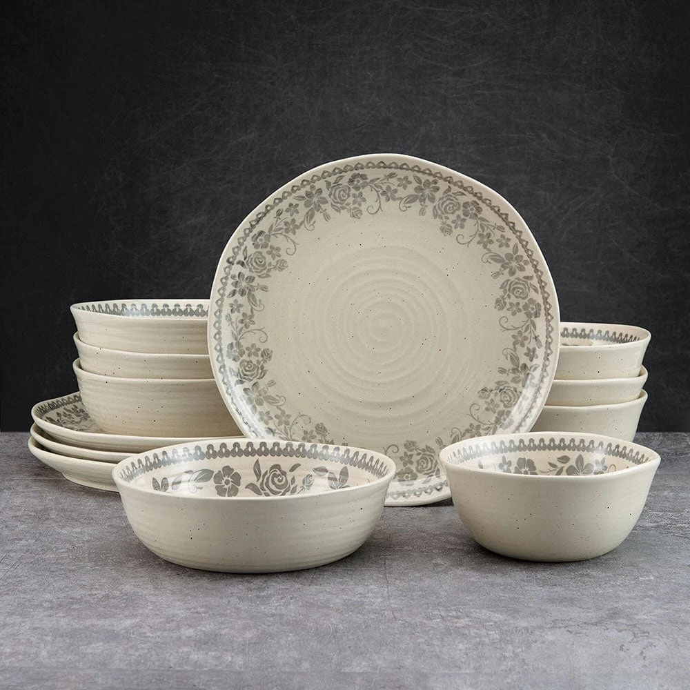 Hayden Grey 12 Piece Dinnerware Set, Service For 4