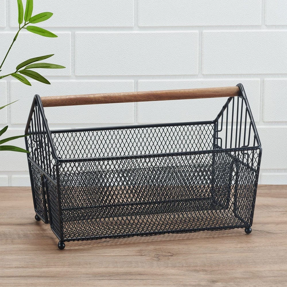 From the Gourmet Basics by Mikasa Collection, this Porto Stacking Storage Basket features a wire frame design, allowing air to circulate through the breathable cage. The stunningly, elegant classic black finish and acacia wood handle will compliment any decor.