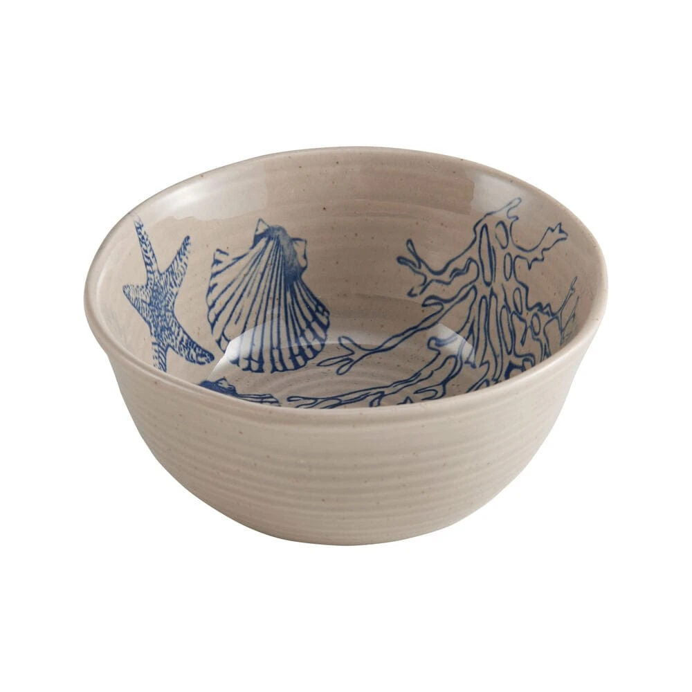 This Pfaltzgraff Southport Dinnerware Set features rustic, uniquely shaped pieces, with a gentle blue pattern of aquatic life that adorns the surface of each piece and a distinct speckled effect that brings to mind the curving edges of the ocean water as it washes over the sand. Note that due to the organic hand-crafted design, no two pieces are exactly alike and will exhibit slight variations in color and shape.
